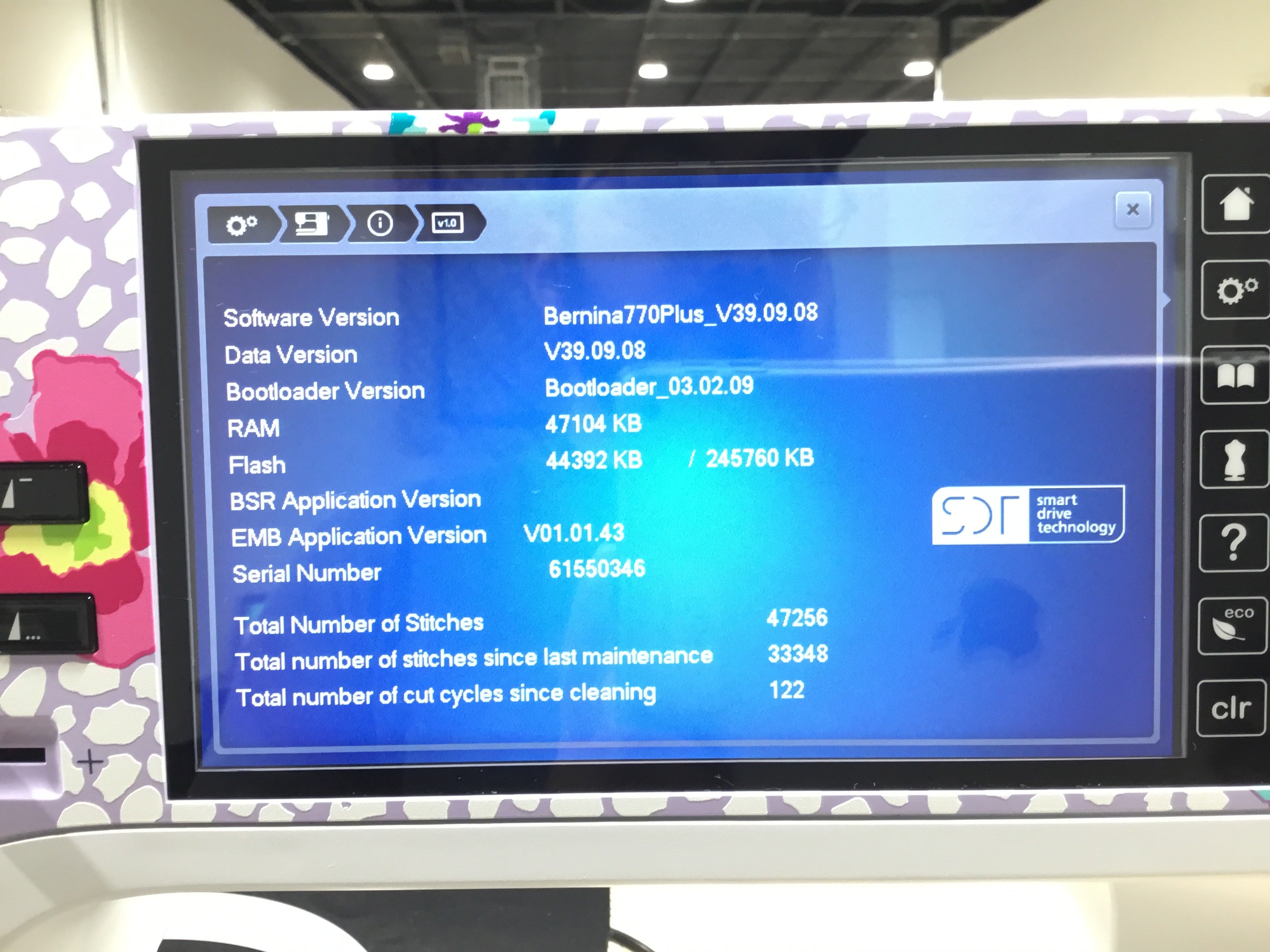 • BERNINA Smart Drive Technology (SDT) module elevates your embroidery experience with enhanced stitch quality, smoother and quieter movement and up to 55% higher embroidery speed.